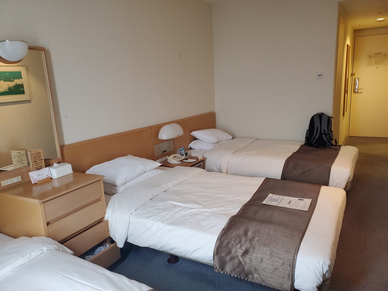 居場所はベッドの上しかない状態でだいぶ窮屈なのでトリプルルームでの長期滞在はちょっとキツイかなと思います。