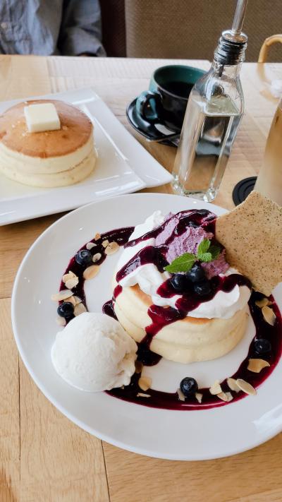 季節限定のブルーベリーのフロマージュパンケーキを頂きました。名前からしてぜったい美味しいやつ。