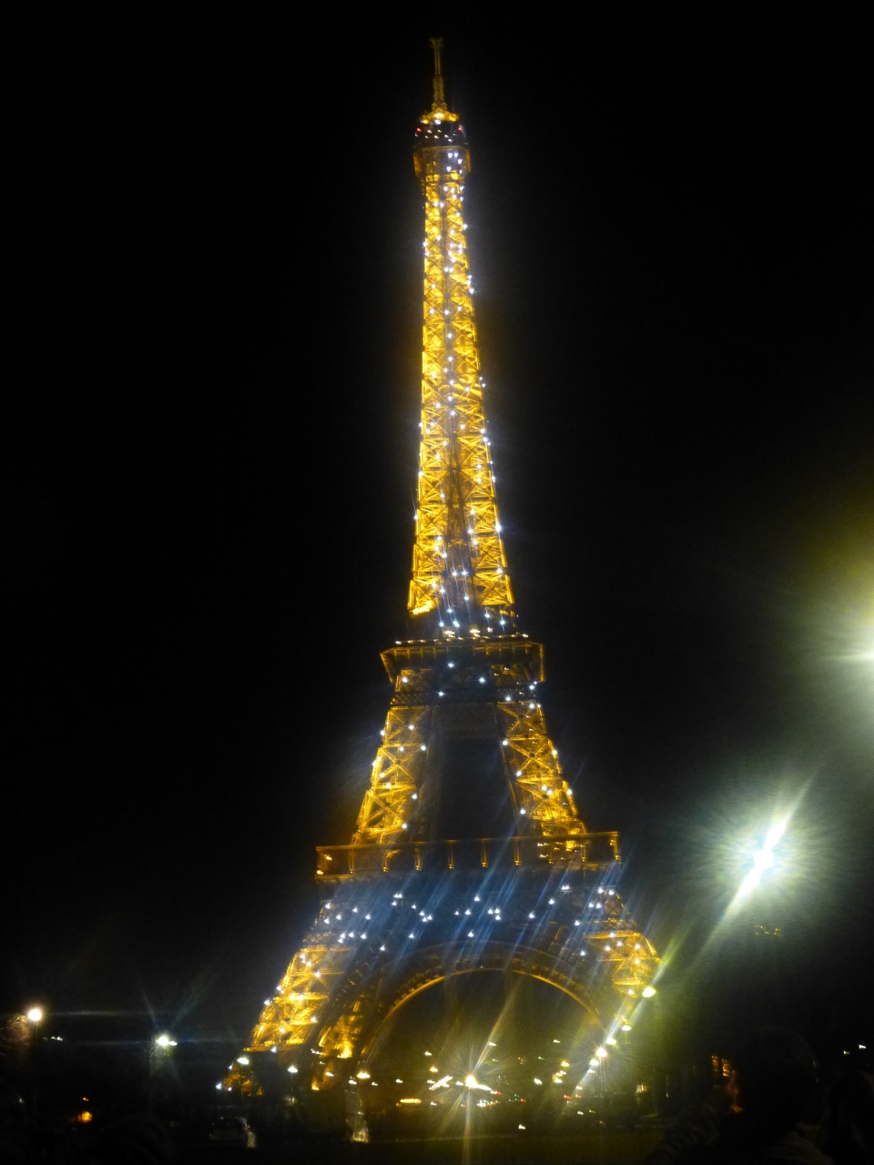 パリの夜景はとてもきれいなので、絶対見た方がいいと思います。でも、私は女一人旅だい、夜のパリは怖いってかんじだったので、バスツアーに参加しました。パリ市内の夜景スポットを回ってくれるのですが、このエッフェル塔のシャンパンフラッシュはめっちゃきれいでした。