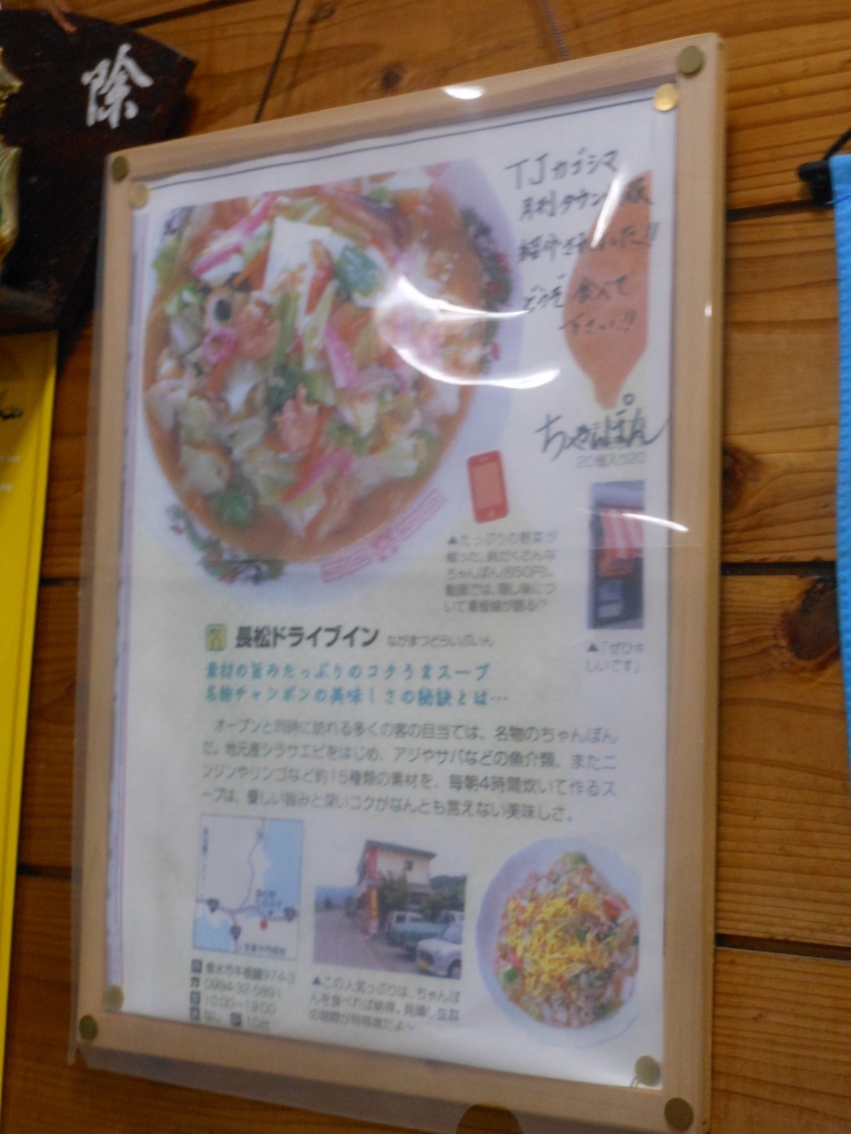 以前ドライブインながまつでしたがお食事処ながまつに変わっています。道の駅たるみずゆったり館が近くにあります。情報によるとチャンポンが美味しいと言うことでしたが、私はラーメンが食べたくてみそラーメンを頼みました。とても美味しい味でした。他にもいろんなメニューがありお昼には結構お客様がくるようです。ここで食事をされて近くの道の駅たるみずでゆったりと足湯に入り桜島を眺めるのも良いとおもいます。