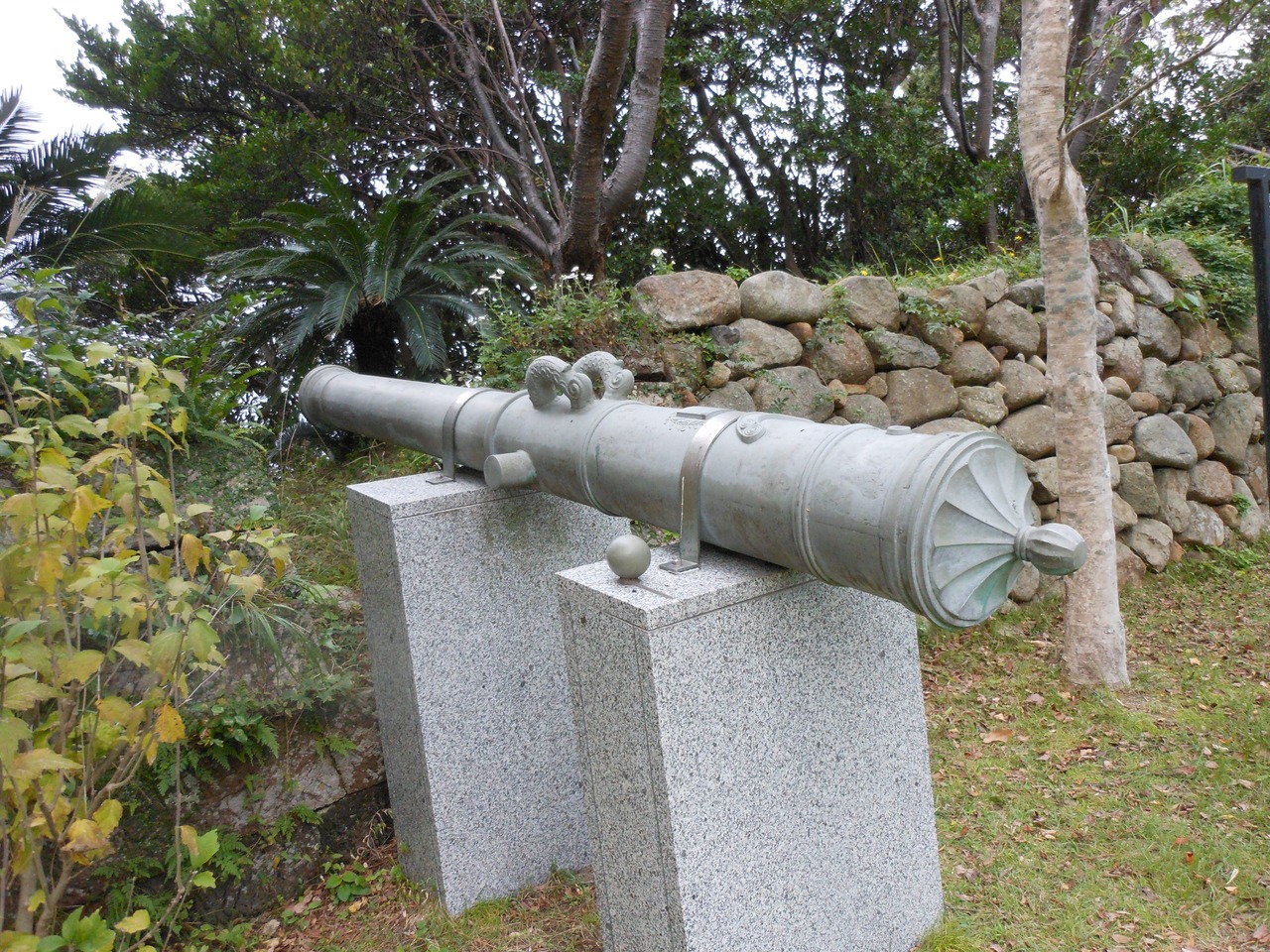 佐多岬の帰りにここ鹿児島県錦江町にある砲台跡「台場公園」に立ち寄ってみました。沿岸に築かれた砲台で台場公園には薩英戦争のなごりを残す砲台が復元展示してある。台場跡には台場3m幅4mの御影石の石垣は延長60mにも達し中央に凹部が2つ残っています。薩英戦争で発射する機会はなかったが錦江湾沿岸に数十の台場が構築された中で当時の台場として原形をとどめているのはこの台場だけという貴重な史跡です。