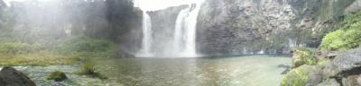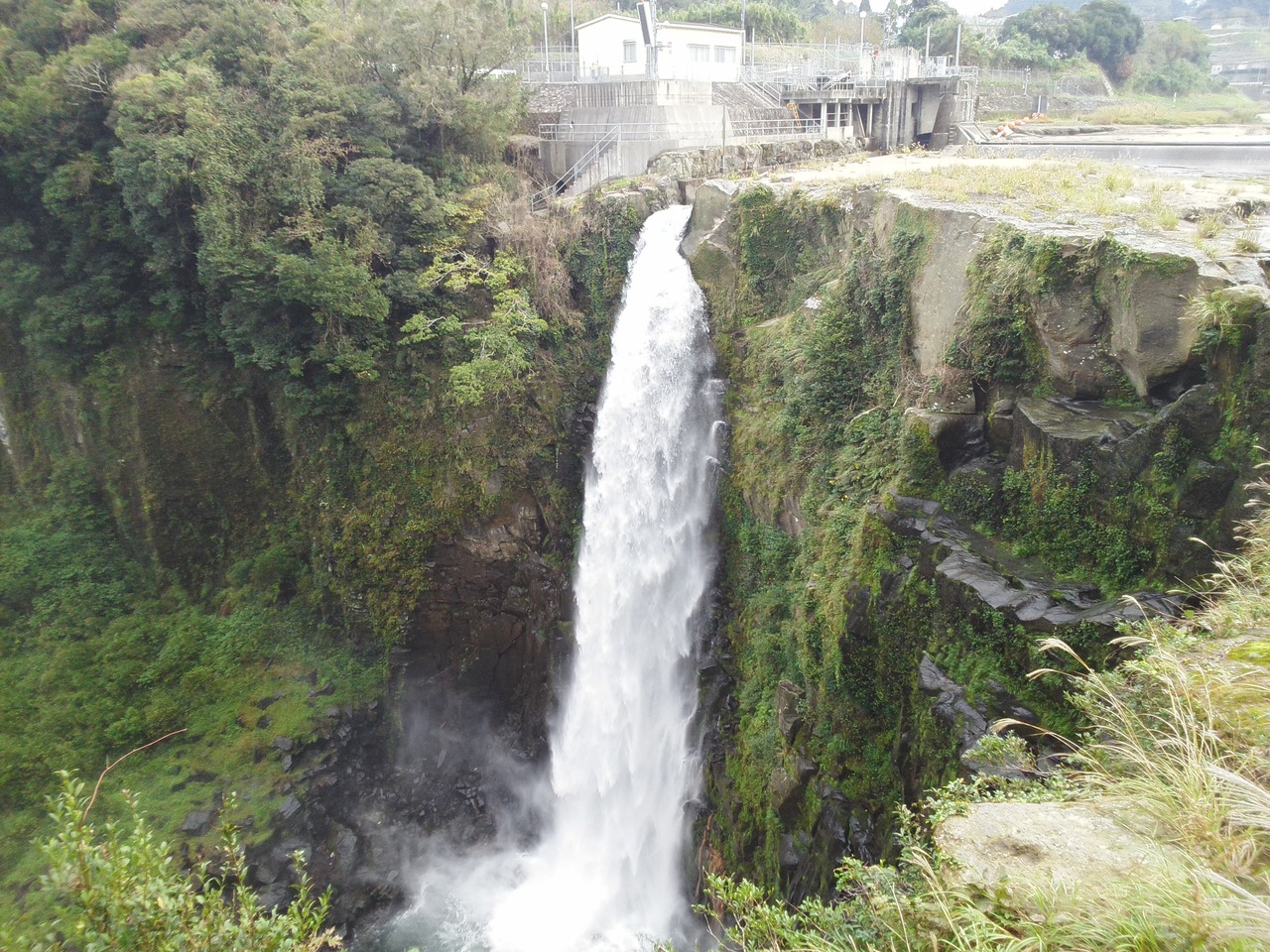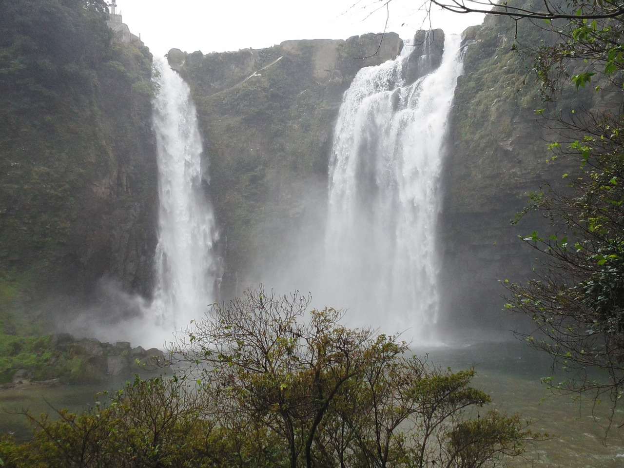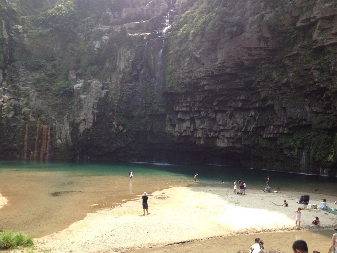鹿児島県南大隅町にある雄川の滝です。雄川渓谷の遊歩道から1200m歩いていくと目の前に豪快な滝が現れます。落差46m、幅60mで伏流水から流れる景色も良いですよ!