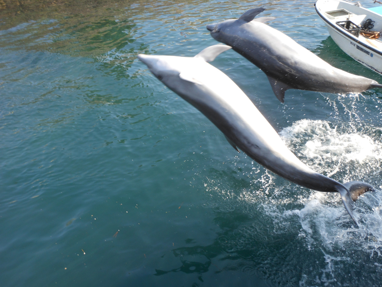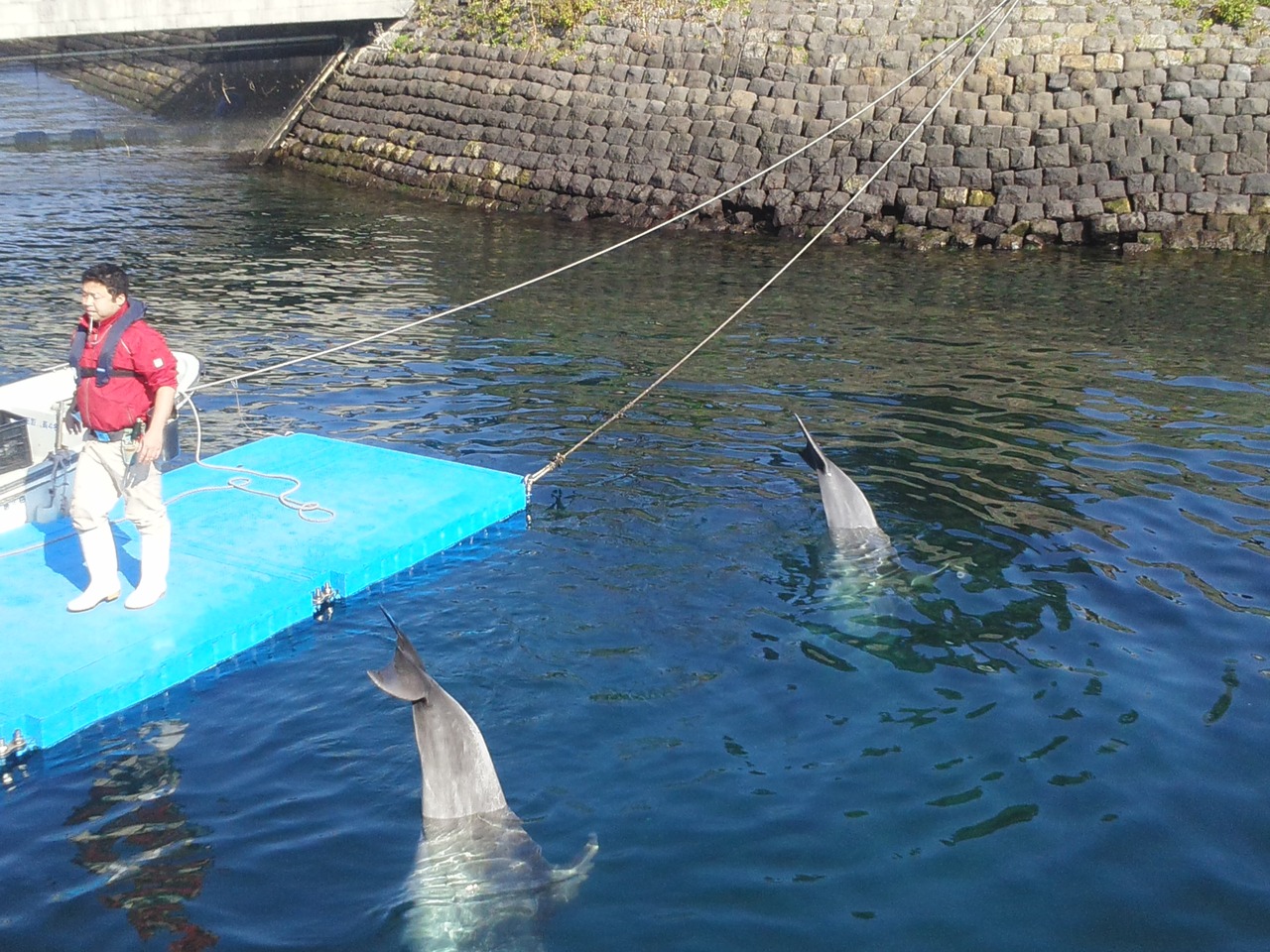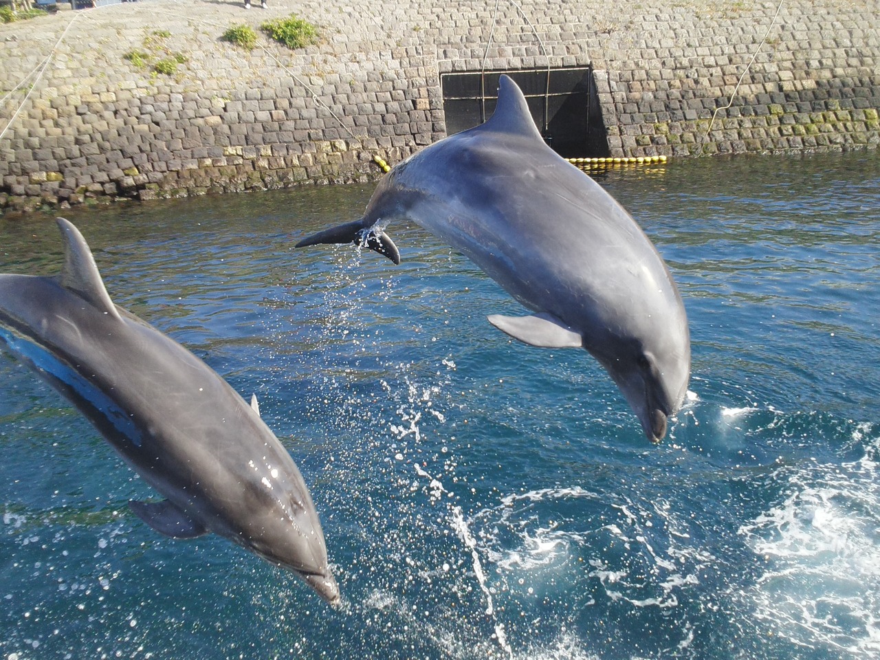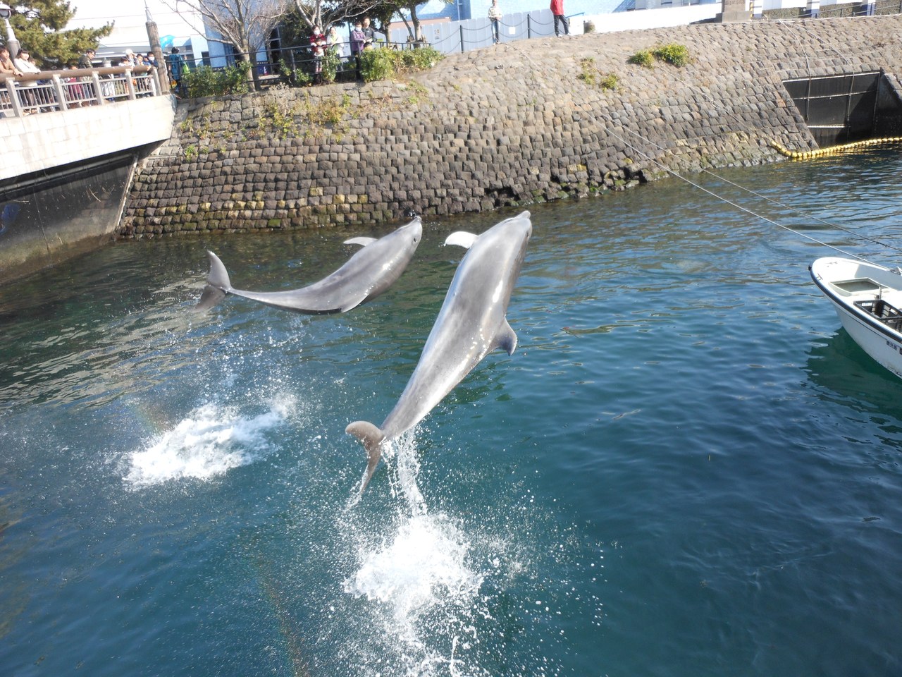 帰り道に水族館の水路の前を通っていたらこれからイルカのショーがあるとのことでちょっと見てみることに!約20分位あったかと思います。よく訓練されているのか飼育員の出した指示に反応して回遊、ジャンプを繰り返しして観客を楽しませていました。時折目の前でジャンプしたりして水しぶきが飛んできたりしました。一日四回行われていますが開演時間を書いた案内があったけど写真を撮るのを忘れました。