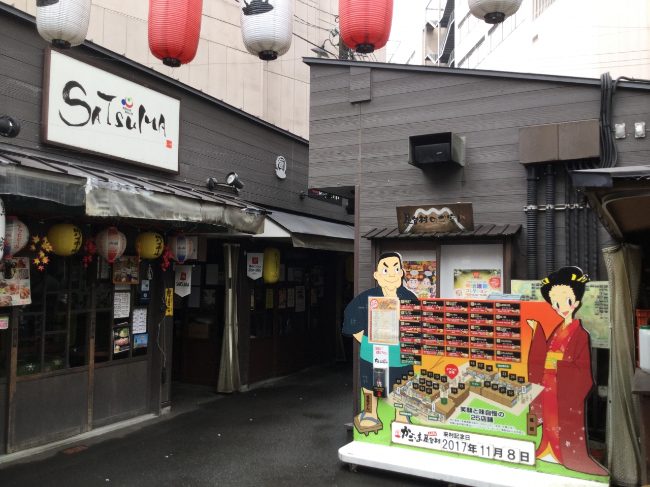鹿児島中央駅近くにあるかごっまふるさと屋台村は2012年4月に誕生した伝統的な郷土料理の屋台から鹿児島の味を伝える個性豊かな屋台まで25軒が並び旬の食材、郷土料理のおもてなしで焼酎を飲みながらかごっま弁を聴きながら過ごさせればいいかなと思います。私が行った時はまだどこも開いていませんでした。