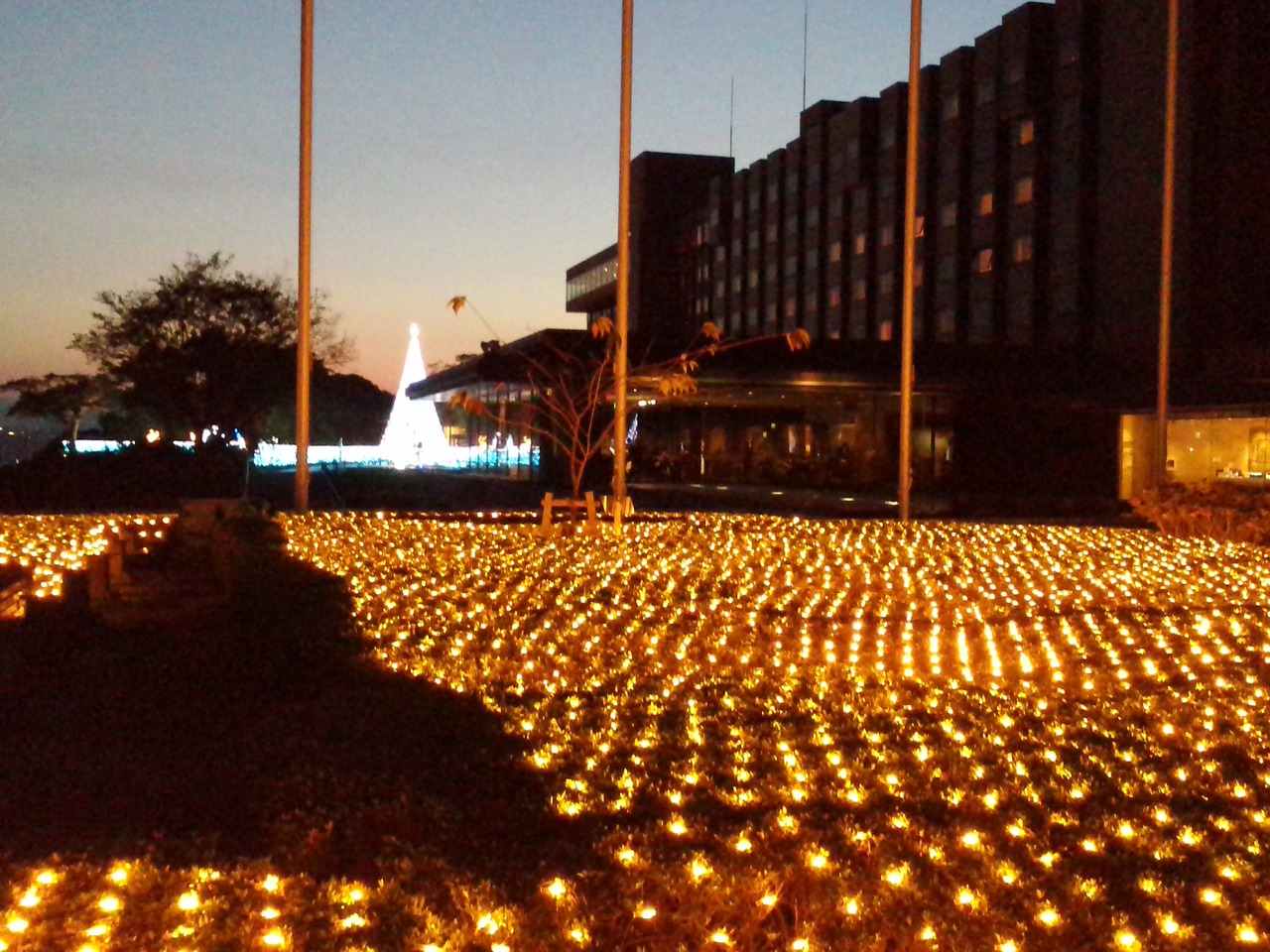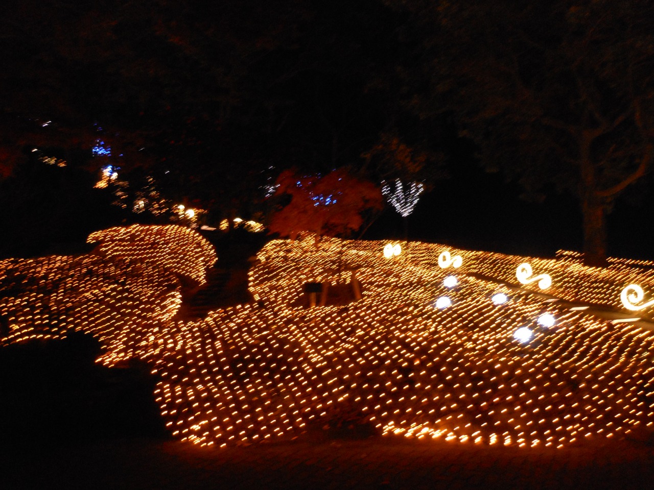 庭いっぱいに飾られていてとても綺麗でした。夜は肌寒い感じでしたがここからは