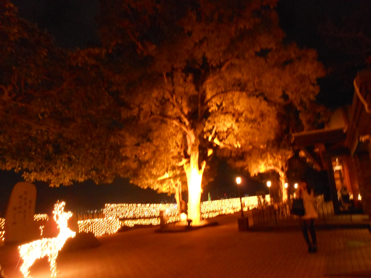 鹿児島市内の夜景もよく見れる。イルミネーションを見物する人も結構いた。