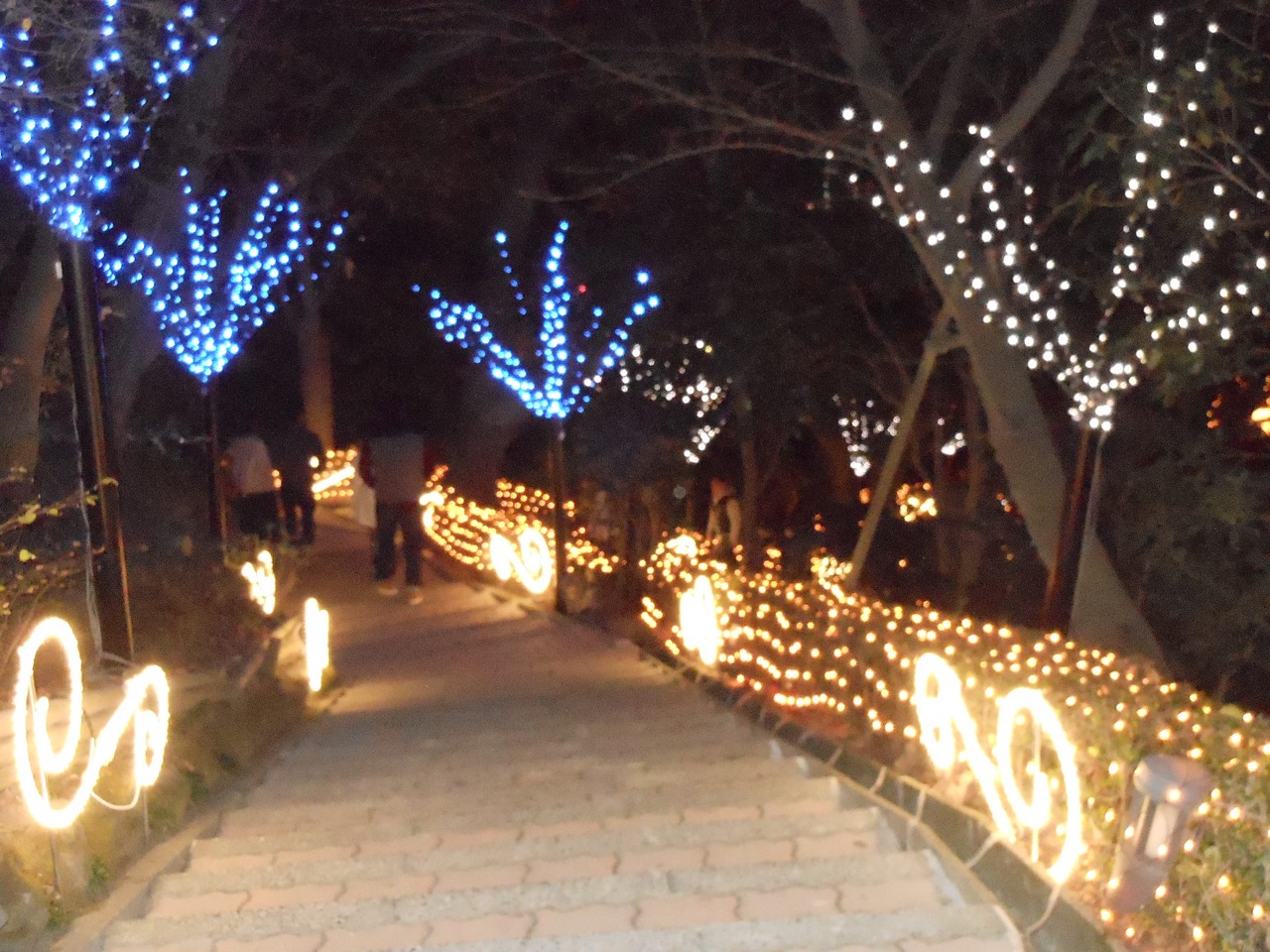 二年ぶりに訪問しました。今年はイルミネーションの数がだいぶ増えています。以前と変わって大変綺麗なイルミネーションです。若いカップルには記念の写真を撮るのに良いポジションですね。- 旅行時期