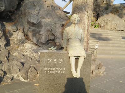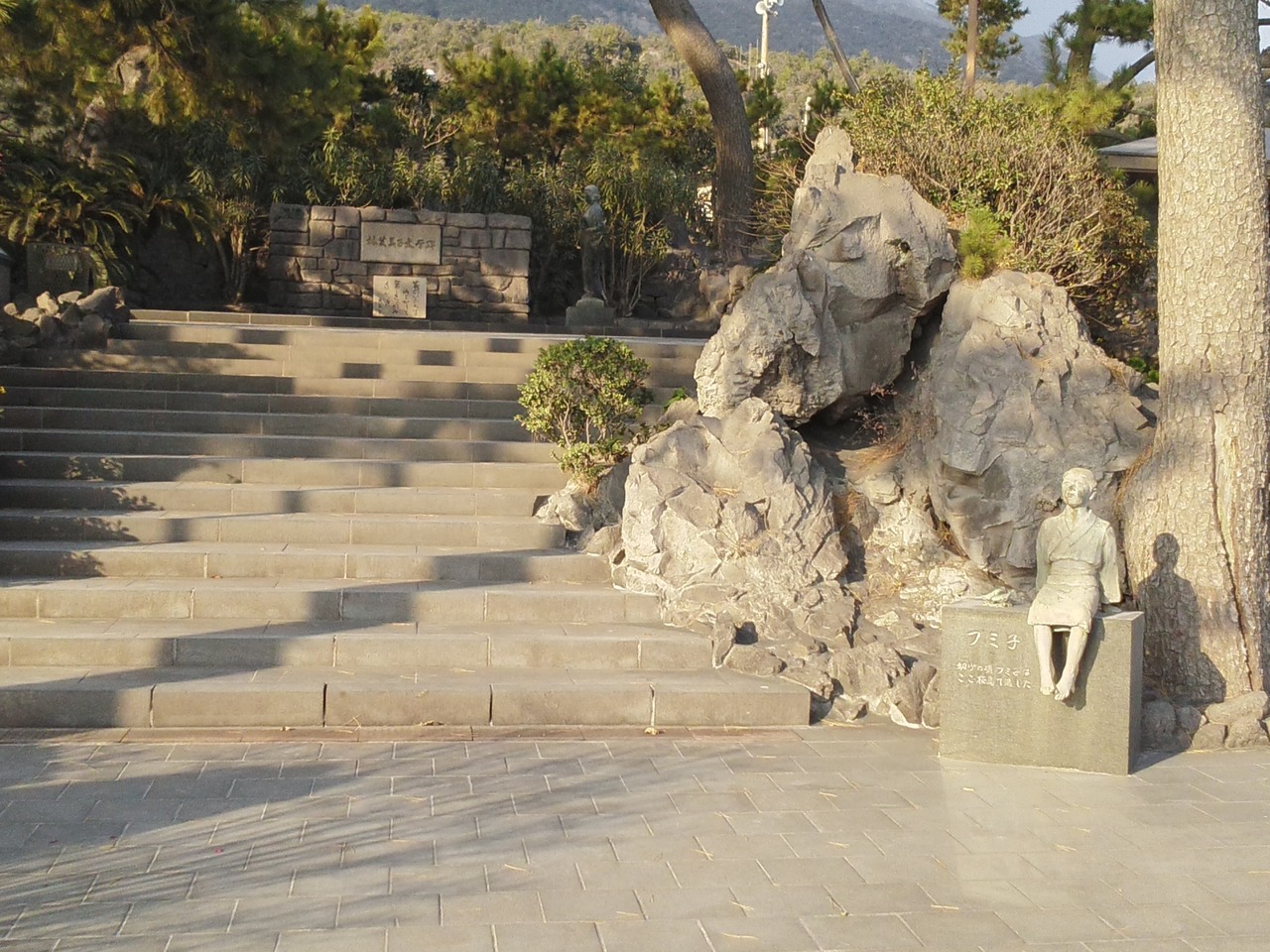 少し離れた所に「芙美子像」があり腰掛けている少女の台座に「幼少のころフミ子は