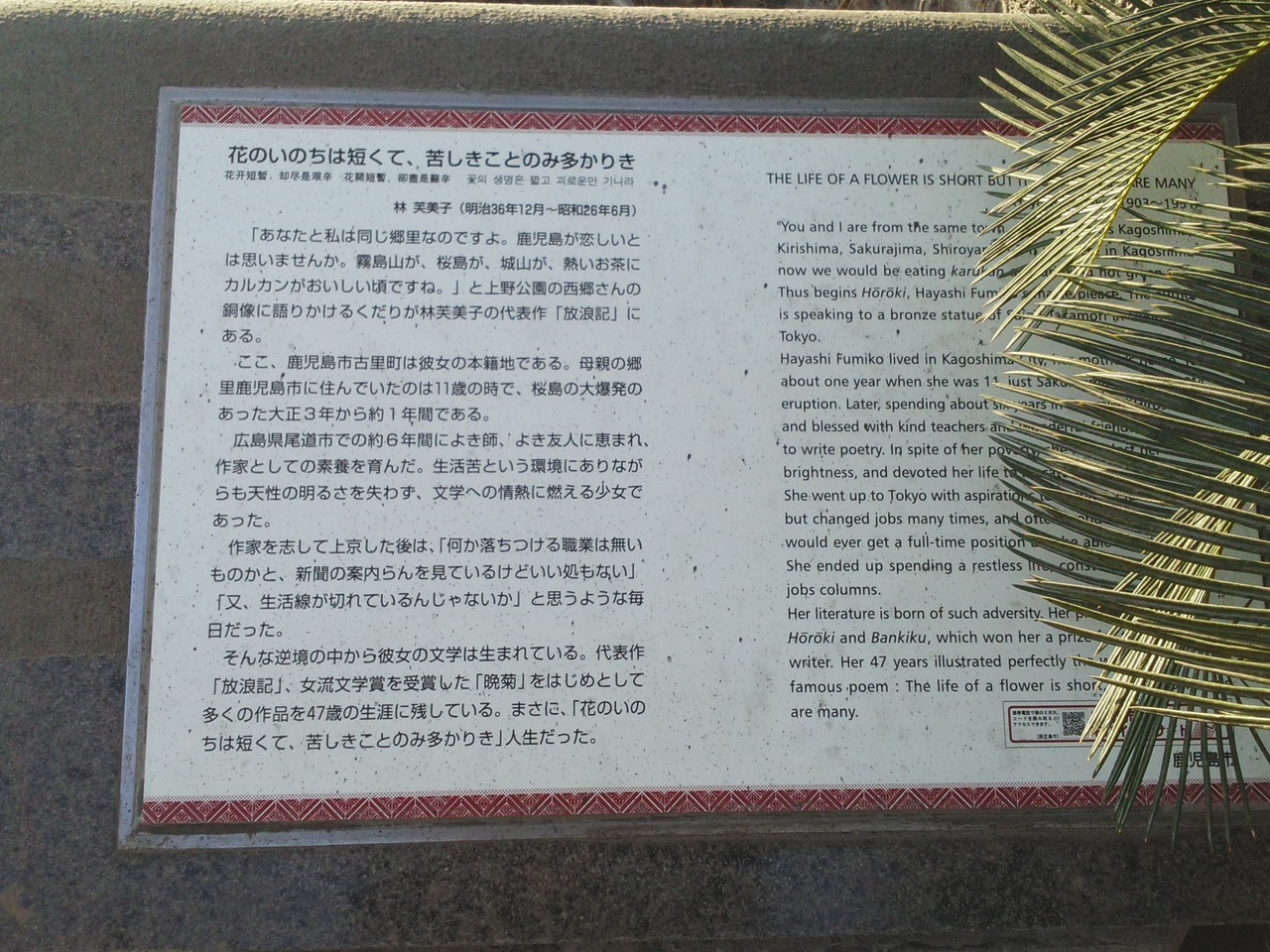 鹿児島県桜島の古里町は林芙美子の母の故郷で11才の時で桜島の大爆発のあった