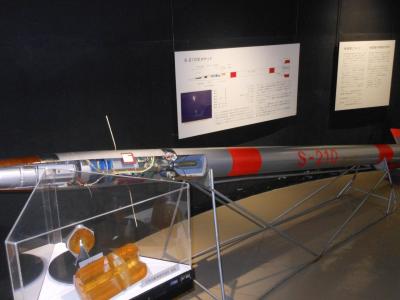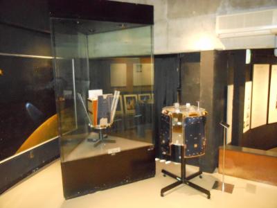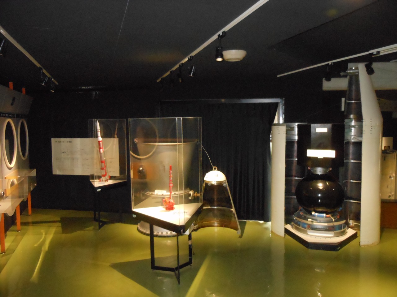 この周りを螺旋状に展示物が並んでいます。ロケットや人口衛星・宇宙観測器などの実物や模型,写真を展示し宇宙開発の歴史を分かりやすく見ることができます。