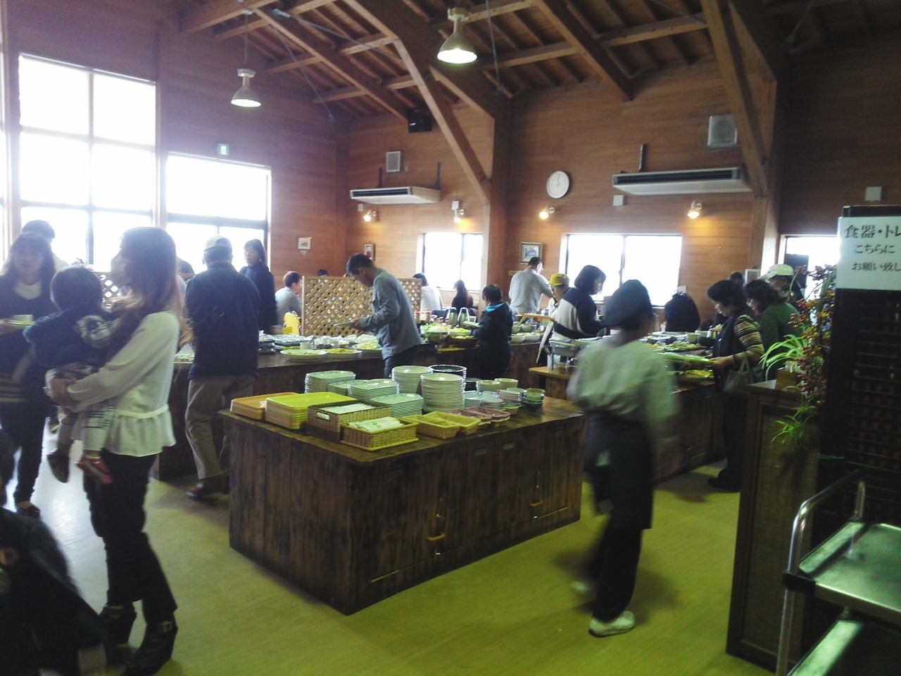 お昼のランチに道の駅すえよしの中にあるレストラン四季祭(しきさい)に行きました。男性1000円、女性900円で一時間のバイキングで料理も50品目もありボリュームたっぷりです。デザート、コーヒー、ジュースもあります。時間も限られているので回転も早いようです。行ったときは20組くらいの待ちでしたが15分くらいで案内されました。