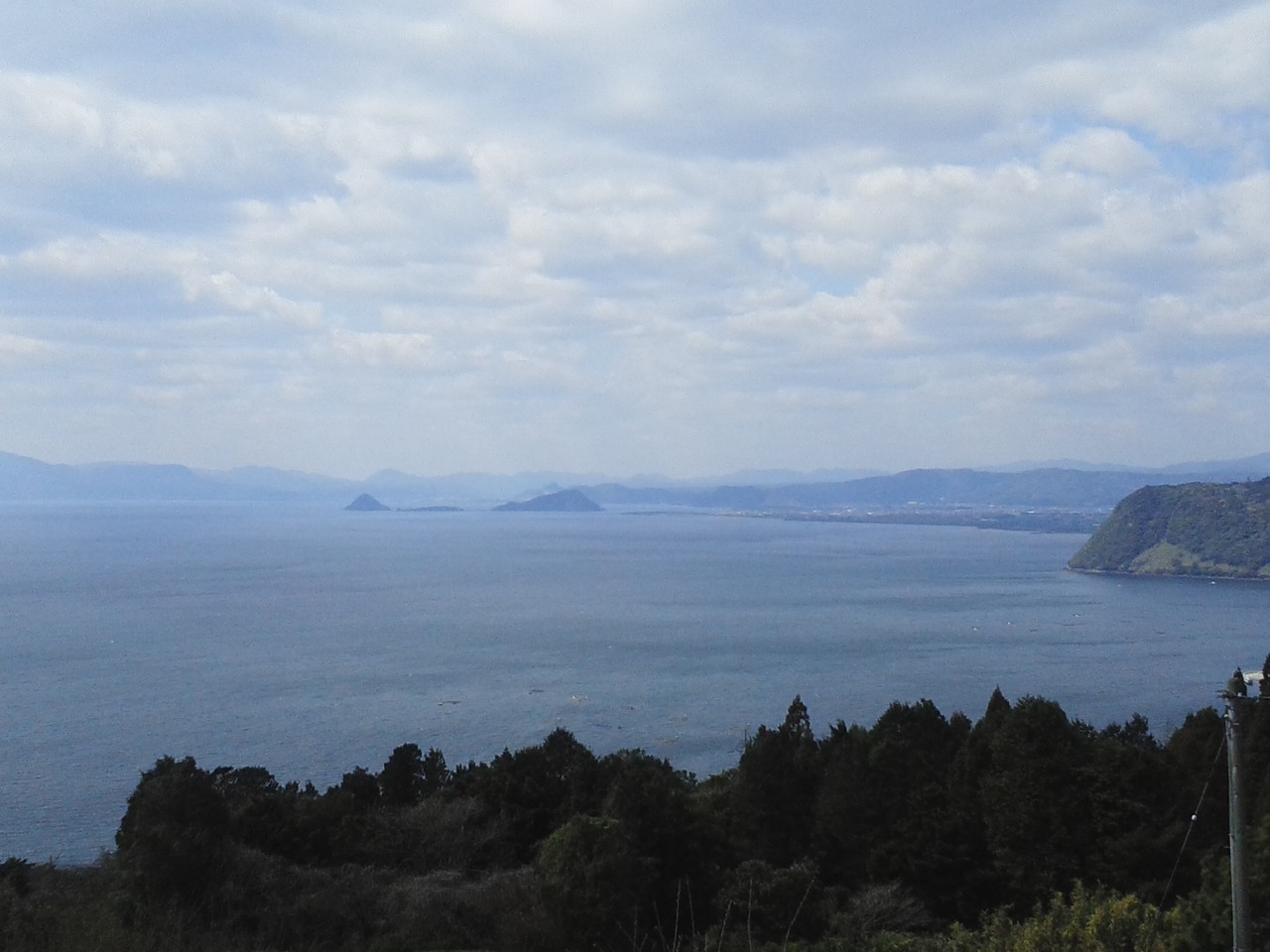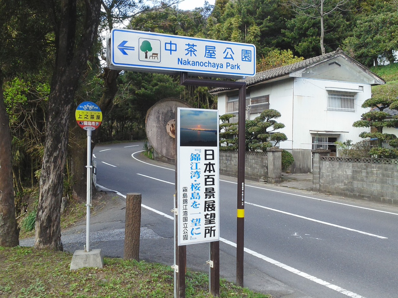 桜島方面から国道220号線を北上し鹿児島県霧島市福山町の交差点(夫婦イチョウで有名なところで黄金色したイチョウのライトアップもあります)から478号線を宮崎県に向けて走ると坂の途中にあります。ここの道路は登り坂でカーブが多くて運転が大変です。ここからは錦江湾・桜島を一望できる日本百景展望所です。180º見わたせる大パノラマが広がります。