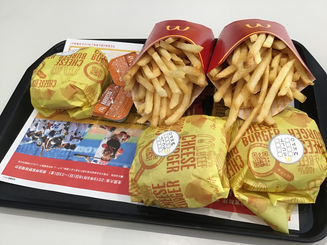 孫の買い物を済ませてお昼前で孫たちがマクドナルドで食べたいと言うので連れて行きました。夏休み、お昼前でもありますが混んでいませんでした。ドライブスルーも止まってなく店内もスムーズに買えました。ポテトチップス、ハンバーグ、チキンナゲット(15ピース)を買って二階の席で食べさせました。私は何も買わずに待っていました。