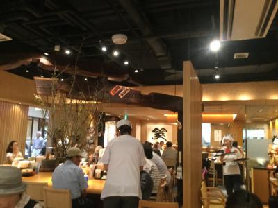 アミュプラザの地下にそば茶屋吹上庵があります。12時を少し回っていて外には行列ができていました。順番待ちの番号を出して15分くらい待ちました。うどん、そばだから回転が早いようで私たちの前に10組くらい居ました。吹上庵に行くといつも天丼小どんぶり(天丼、うどん)を注文するのですが今回は天ぷらうどんにしました。