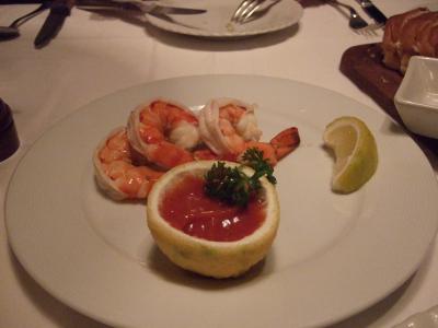 オニオングラタンスープとシュリンプカクテル、170gフィレステーキ2つ、バドワイザー1杯で、約135$でした。(サービス料15%込)