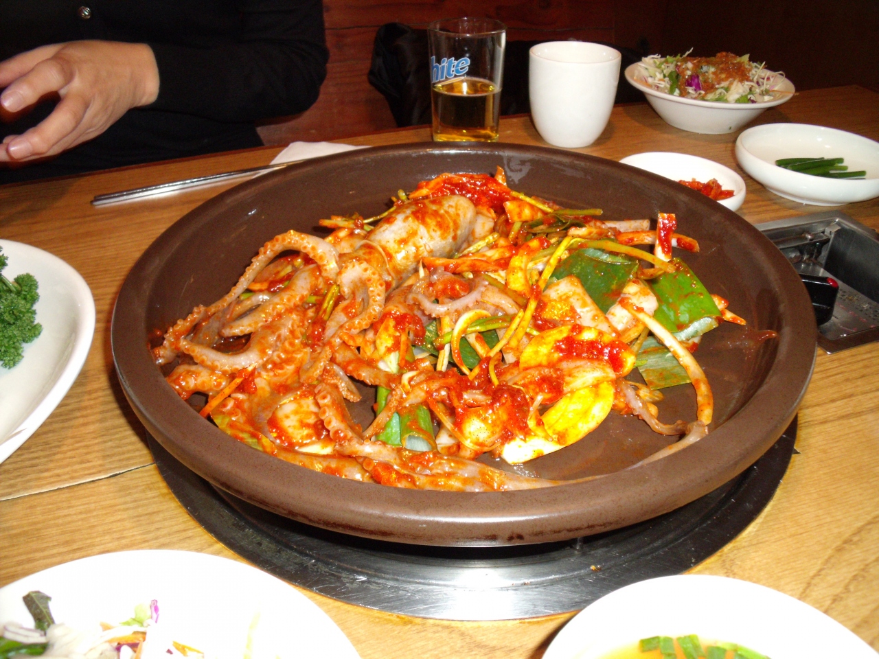 タコのブルコギです。 ソウル市内は江南とここの2店舗のようです。 夜はウワサによると、同じ様なメニューで高くなるようです。 メニューの数は多くないですが、タコは是非食べたほうが良いと思います。 生きたまま、焼いていくので気の小さい方には不向きです。