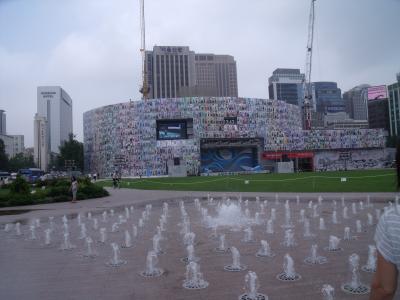 冬にスケートリンクのできる市庁前の広場ですが、夏は小さな噴水がお目見えします。 日本と同様、子供たちがあちこちの噴水を踏んで遊んでいます。 又、8/15には戦勝記念日とでもいうのでしょうか、イベントがありますので、その前後は準備、撤収で大渋滞しますので、近づかない方が良いと思います。