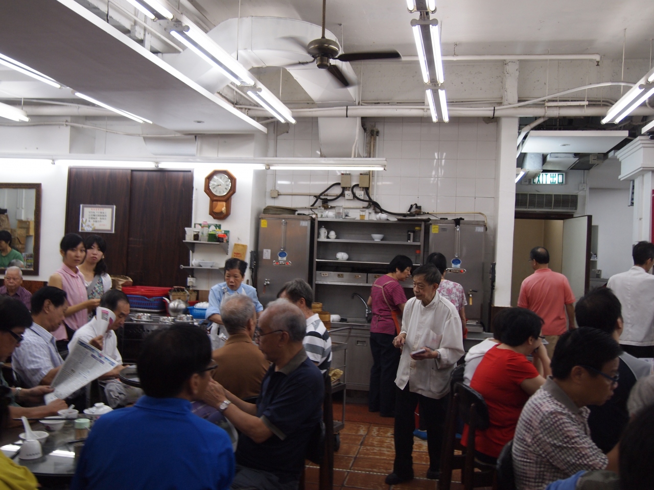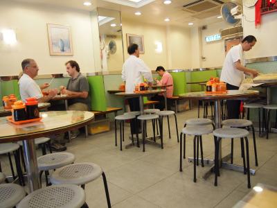 香港でホテル朝食付きのプランもいいのですが、現地に来たならば、一度朝食に行くと良いと思います。 8時頃でしたが、すでに常連のお客さんで満席です。 空きそうなところに目星をつけて、サッと確保します。 ですから、あまり人数は多くない方が良いと思います。 見よう見まねでやっていると、横の老夫婦が食べる前の洗杯(茶碗の洗い方)をジェスチャーで教えてくれたりと、ローカル色が豊かです。 決して、観光客に媚びることのない店だと思います。