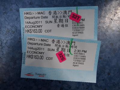 香港島のフェリー乗り場から、マカオに行けます。 事前に購入していたので、希望の時間に乗ることが出来ました。 ピーク時には、1隻待ちとかあるようです。 希望時間より、早い便に乗りたい場合は、キャンセル待ちの列があるので、そちらに並べばいいとおもいます。(ただし、希望の席は取れません) なるべく早くチェックインして、乗船口に行き、窓きわの席をとることをお勧めします。