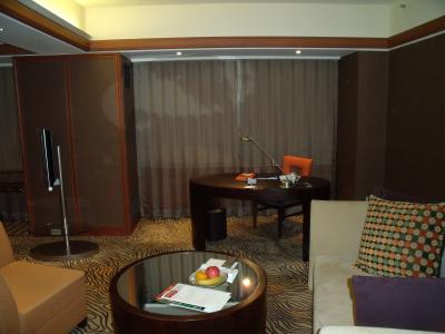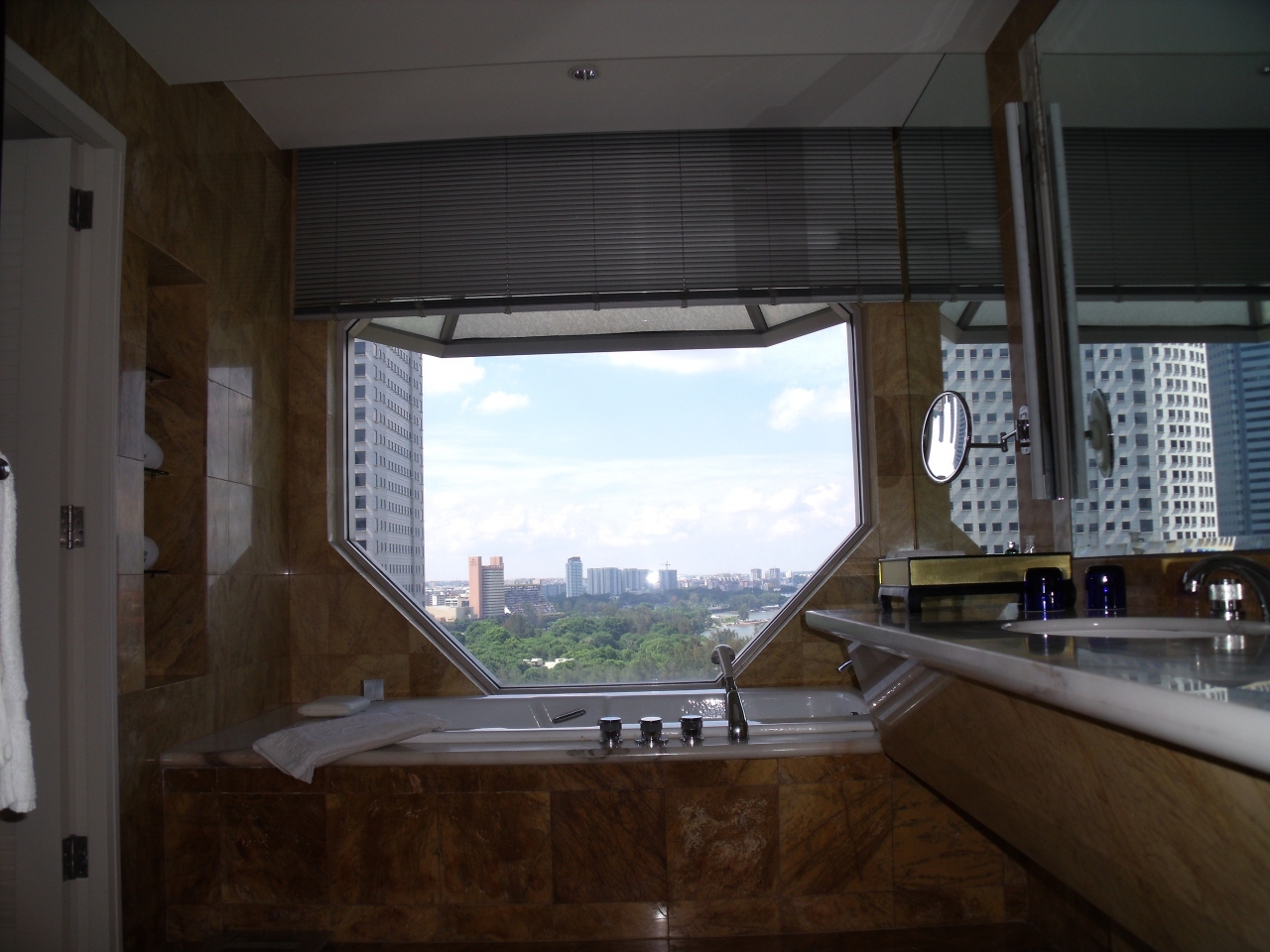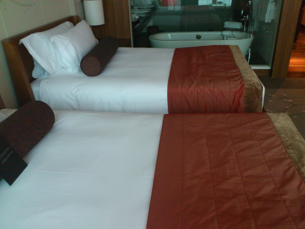 独特の作りのせいか、寝ていると枕元に廊下の音が聞こえます。 バスルームは開放的なのですが、チェックインの際ボーイさんに、お風呂を使うときは、ブラインドを下ろすように注意されます。 すごく、インタ−ナショナルを感じるホテルです。