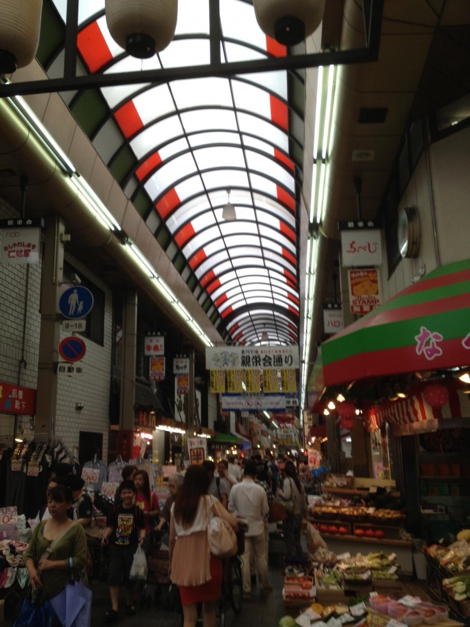 日本橋駅からほど近い、黒門市場に行きました。 雨の日曜日だったせいもあるのでしょうが、閉まっているお店も多く残念でした。でも、フグ、マグロを食べさせるお店、鮮魚店、八百屋さんも開いており、雰囲気を味わうことが出来ました。