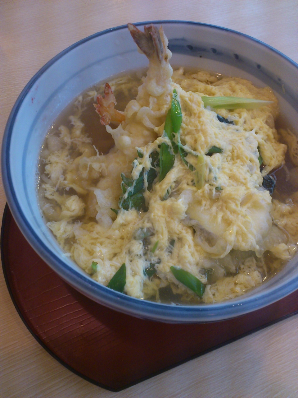 黒門市場内にあるうどん店です。 海外からのお客さん(韓国・中国)の人たちの絶賛の色紙が段ボールにいくつもあります。 私たちは、東京では食べたことのない天とじうどんをオーダーしました。 650円ですが、エビ天が2匹、野菜天が2つ、そして海苔天が卵でとじられています。 24時間営業のようですが、安くて美味しくて大満足でした。