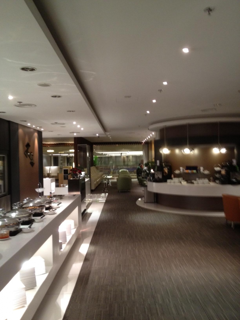 出発ロビーの1階うえに、各航空会社が相乗りで使っている(JALも)ラウンジがあります。 シャワーもあり、タオルは言えば受付で貸してくれるので、トランジット、夜行便の時は便利です。 お酒、ソフトドリンクも一通り揃っているのですが、食事が若干チープなので、(ただで使っていて申し訳ないのですが)それだけが残念です。