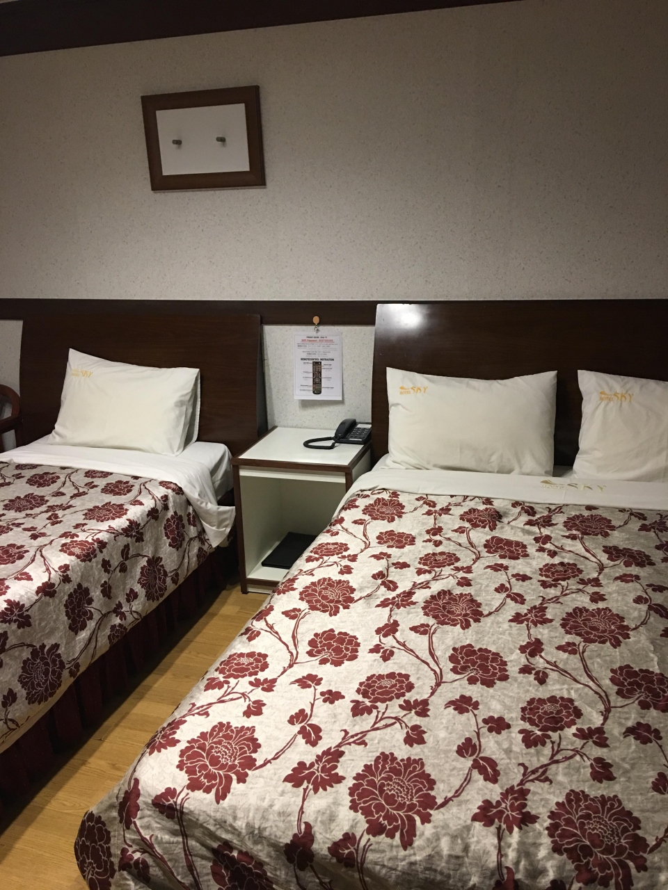 場所は、乙支路4街と東大門の中間でしょうか。乙支路4街駅と東大門歴史文化公園駅とは、地下街でつながっています。 部屋の広さは、もう一つのイビスバジェット東大門と変わらないような気がします。 1911号室だったのですが、ドアの立て付けが悪く、なかなか開かずに苦労しました。部屋はシャワーのみ、サウナ、コインランドリーも併設されておらず、この手のホテルとしては、使い勝手が悪い気がします。 朝食は、この内容でこの値段!という感じです。