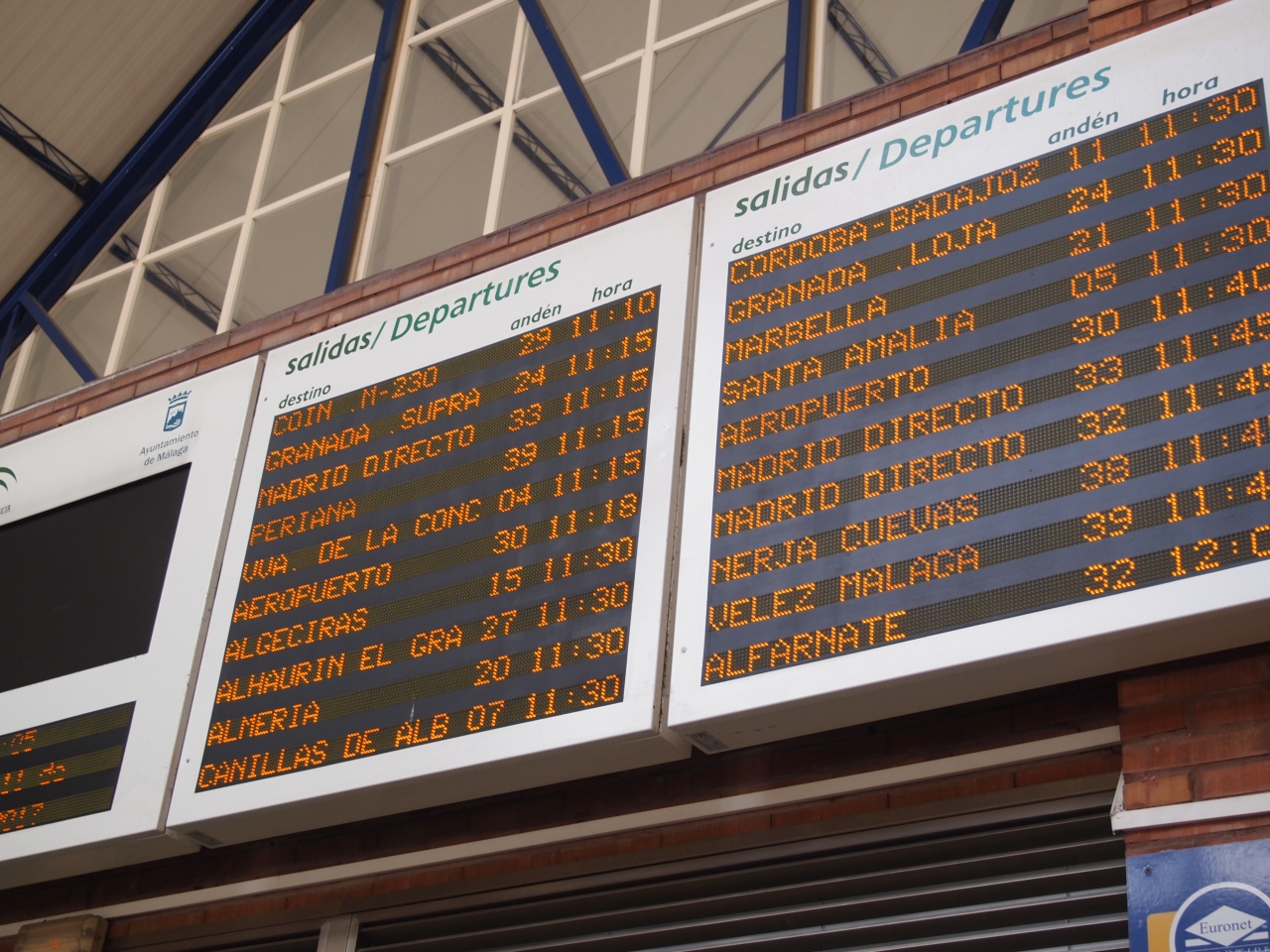 ALSAのHPで、予約をいれました。 英語ですが、出発地、到着地、希望日を入れると一覧が出てきて選べました。 マラガから、ネルハ、グラナダの日帰り旅行に2日間りようしました。 行き先は、電光掲示板に出ていますが、不安ならインフォメーションで確認すればいいと思います。チケットの窓口は結構並ぶし、自動販売機は台数が少なく、現地でも当日ではなく、事前の購入をお勧めします。