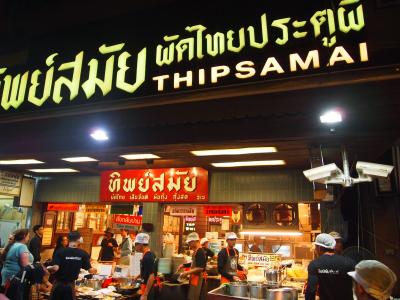 運河ボートで、19時くらいにつきました。 案の定、すごい行列でした。 入るときに部屋の中か、外かを聞かれます。室内は、エアコン代がかかるようです。 並びながら、歩道で料理を作っているのを見ることが出来ます。 行列がなかなか動かないので、非常に暑い! 帰りのタクシーの運転手いわく「深夜は空いているよ。 俺は、いつも遅い時間に持ち帰りするんだ。」と言っていました。