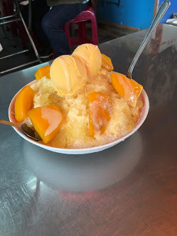 新しい店になっている様で、ご近所さんに「あっちに移ったよ」と、中国語で言われたらしいお店に行きました。 冬でもあり、トマトも食べずに2人で1個で十分でした。 味は、台北で食べるほうが洗練されていると思います。 マンゴは完食しましたが、氷は残しました。 地元?中国語を話す人達も、同様でした。