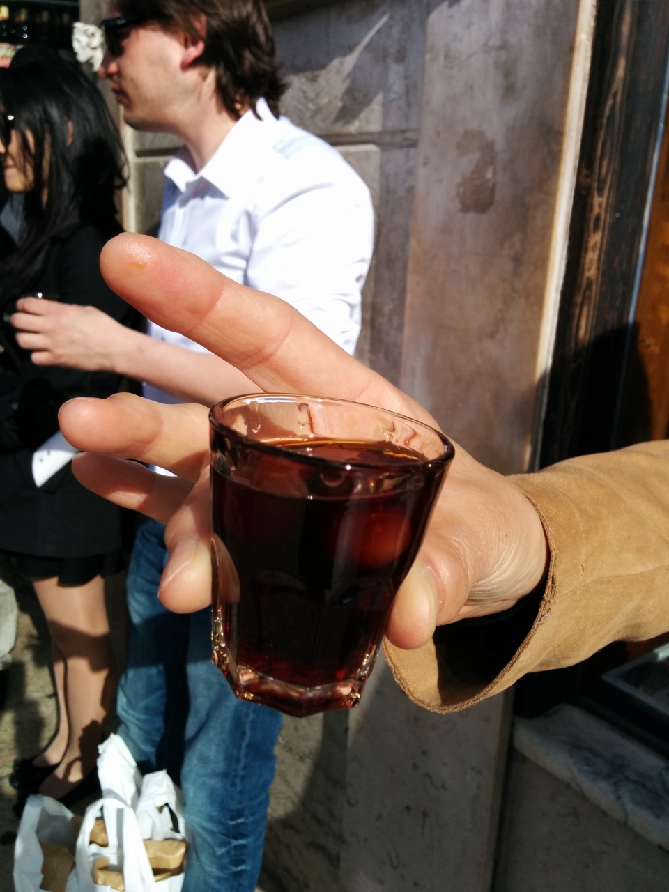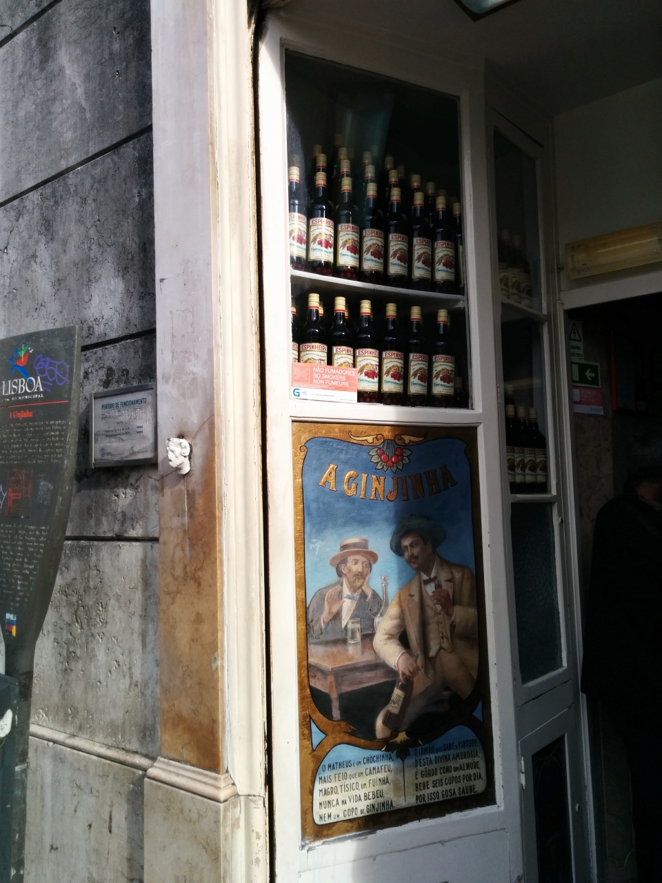 ロシオ広場にある、立ち飲み屋さんです。 「目立た無い」と、ガイドブックにはありますが、観光客が並んでいるので、すぐに判ります。 サクランボ入りと、無しを聞いてくるので、お好みで。 旅に記念に、一杯飲めば充分かな?