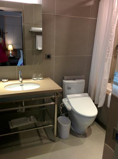 坂の上にあるので、評判は今一のようですが、良いホテルだと思います。 今回は、19階のラウンジフロアーだったので、トイレもウォシュレットが付いていました。 昔は、朝食を摂るのにラウンジでも、1階のブッフェでも良かったのですが、今はラウンジだけになってしまいました。 その点が、ちょっと残念です。
