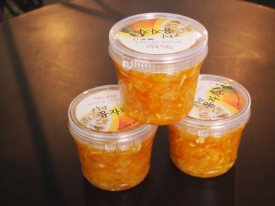 冬季限定の、ゆず(ジャム)を買いました。 機内持ち込みが叶わず、預けたのですが、気圧の関係で、蓋がずれてしまい、若干漏れてしまいました。 某スーパー等で売っている物に比べて、非常に濃厚な味がします。 布のガムテープ等で補強をして、次回再挑戦したいと思います。