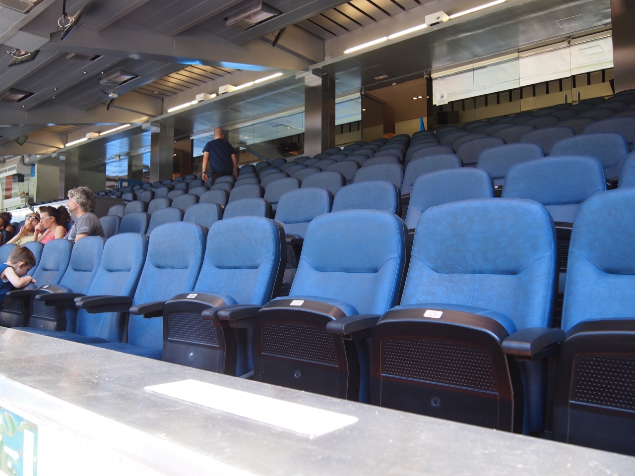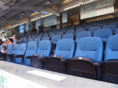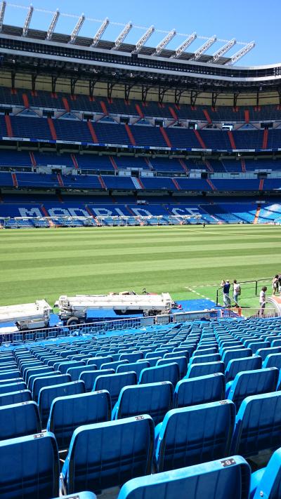 ネットで購入した、見学ツアーで行ってきました。 入場前に、「レアルのカードを作れば、値引きがありますよ」とか、写真も「タダですよ」(選手と写った感じになる)とか、あの手、この手でお金を落とさせようとします。 一番最上階から、ロッカールーム、ピッチサイドまで見せてくれて、なかなかのものです。 ただ、老朽化は否めなく、途中で入ったVIPルームのトイレは、水が流れなかったり、席と席の間は狭かったりします。