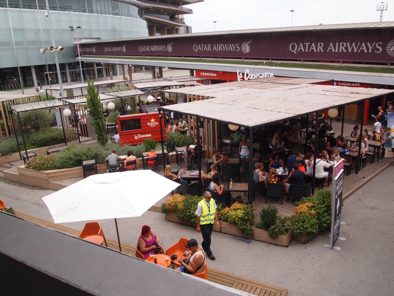 路線バスを利用して、近くまできたら「エクスキューズ、ミー」との声。 カンプノウへの道を尋ねる、外国人観光客。 スマホで、現在地とスタジアムを示し、道があっていることを教えました。 2日前にレアル・マドリッドも見てきましたが、比較するとレアルが王道を行っているのに対し、ツアー参加者が多いことも含め、バー、レストランを併設したり、土産物を売ったり、試合のチケットを売ったり、商売が上手だと思いました。