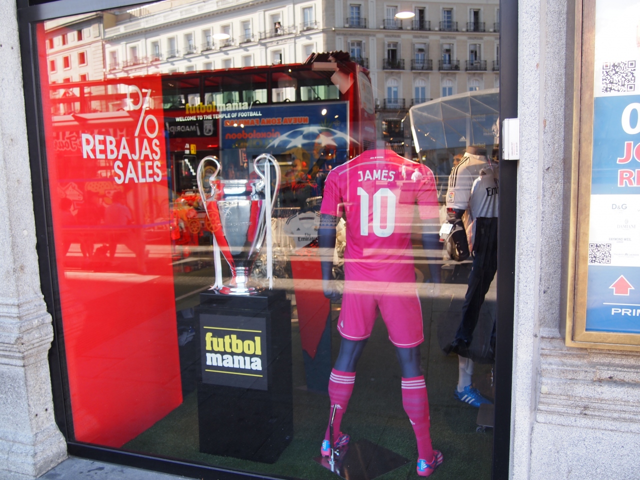 マドリッド一番の繁華街(?)、ソル広場に面しています。 ご当地レアル・マドリッドのレプリカだけでなく、日本代表までありました。 地下には、バルサもあるので、そちらに行かれなくても、買うことが出来ます。 レアルのオフィシャルショップで、品切れの商品があったので、望みを捨てないためにも、覗いた方がいいと思います。
