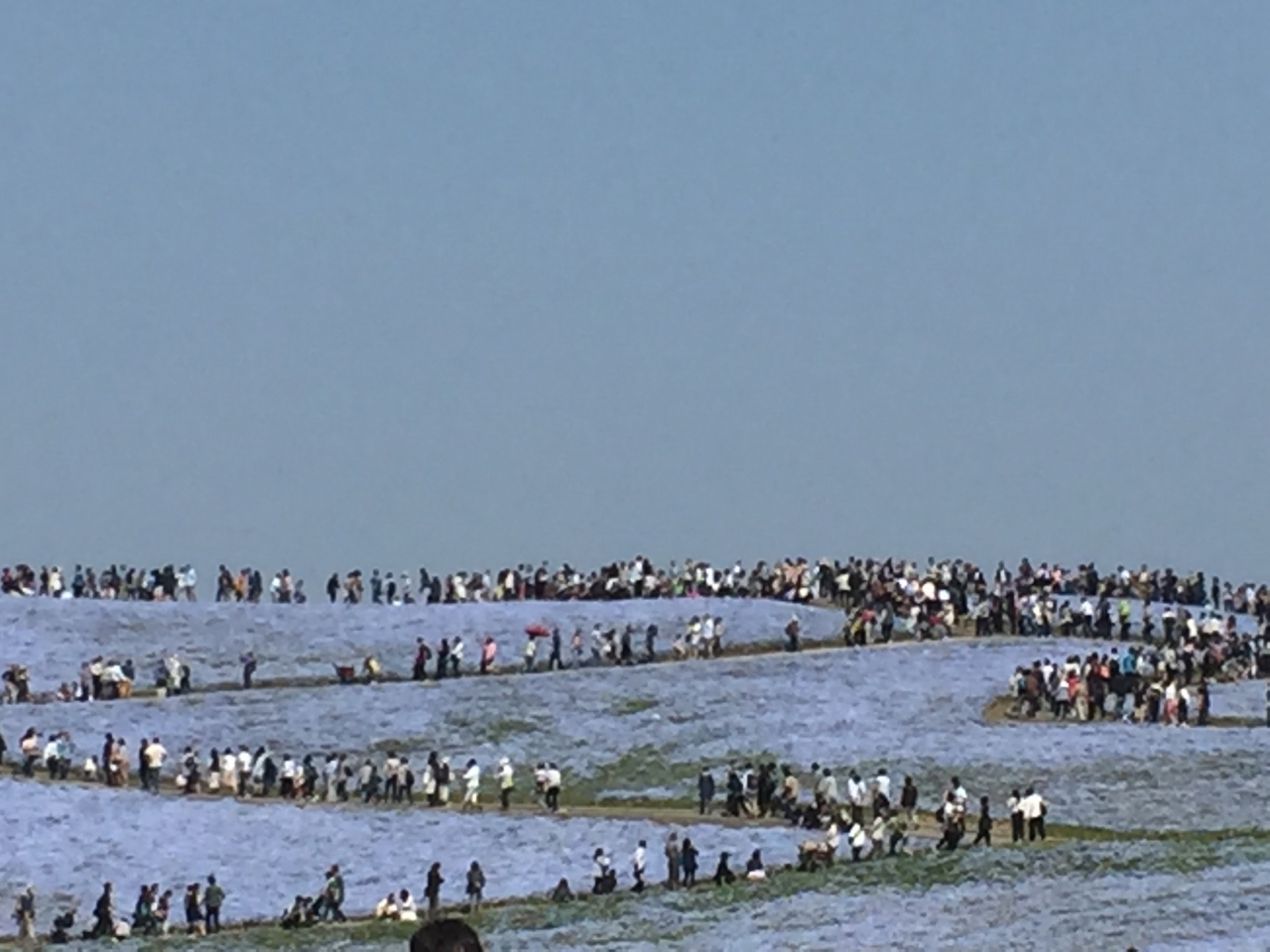 一番のメインであるネモフィラの丘は、美しいというより、人がたくさん居る青い丘・・・って感じで、予想以上の人だらけっぷりにがっくり。