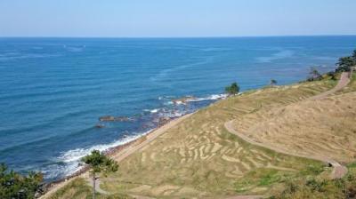 青い空と海、緑の田畑のコントラストがとてもきれいでした。