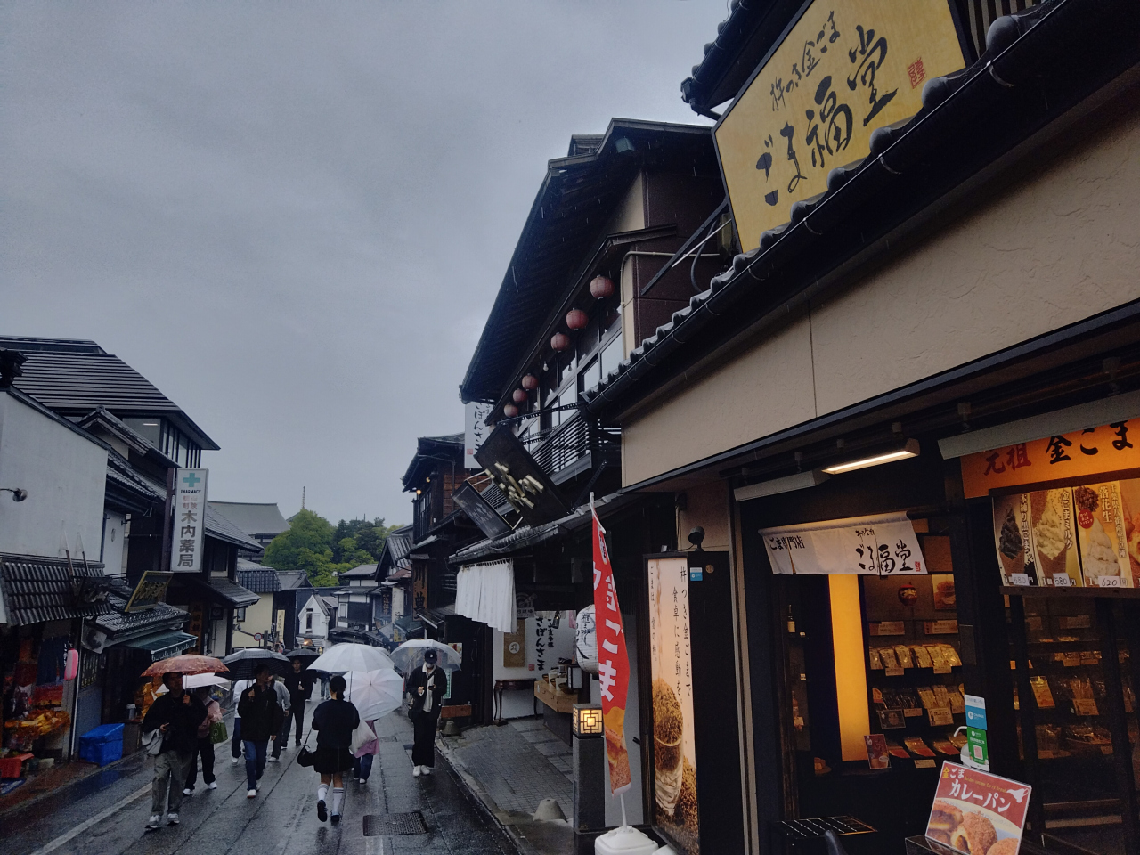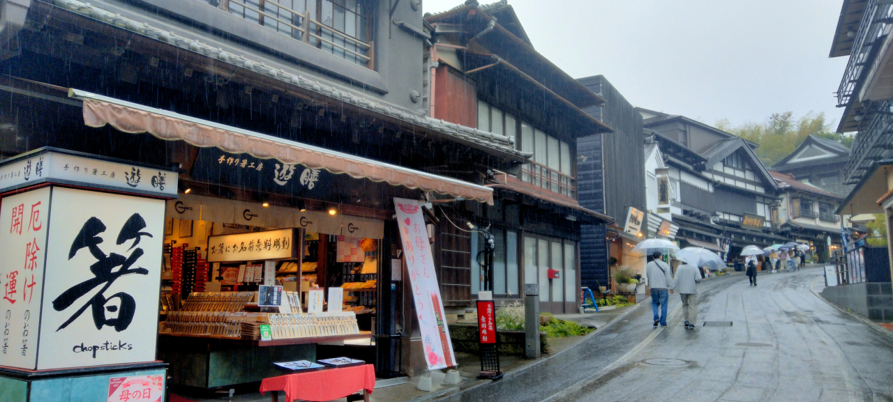 ウナギなどの飲食店や老舗のお土産屋さんが並んでしました。(150以上のお店があるそうです。)- 旅行時期