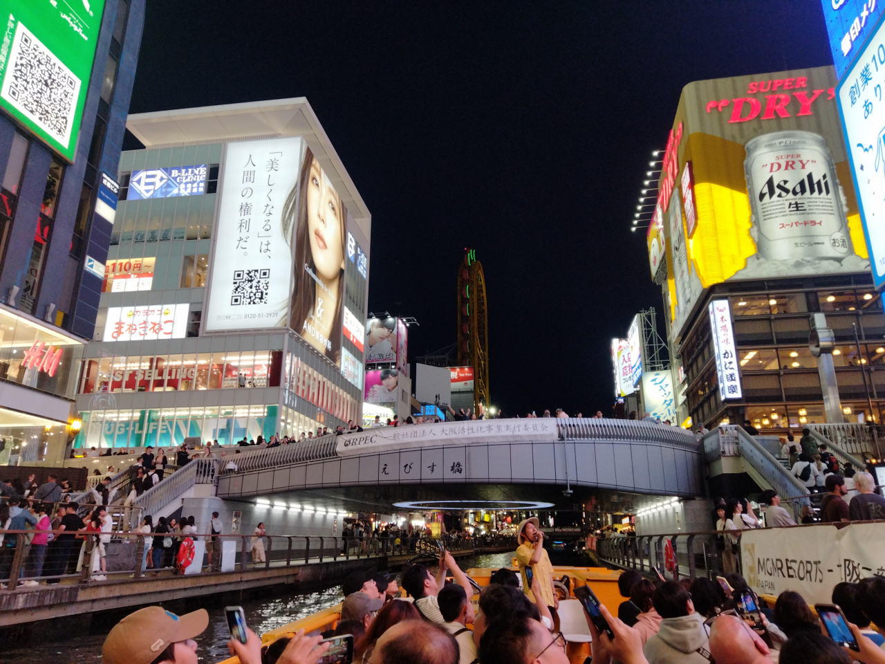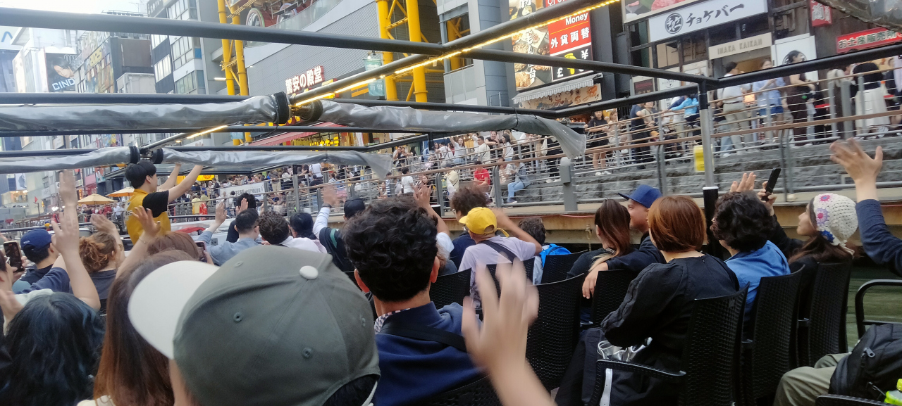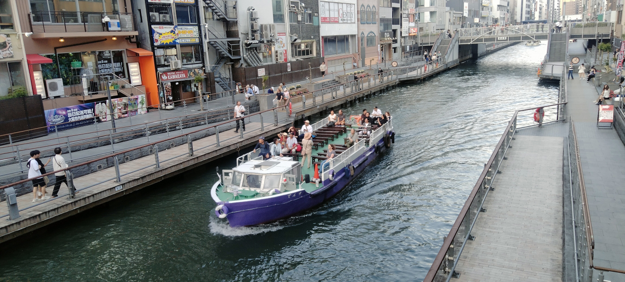 ドン・キホーテ前の「太左衛門橋船着場」から出るとんぼりリバークルーズと、少し離れた「道頓堀 日本橋 船着場」から出るワンダークルーズがあり、営業会社が違う様です。(それ以外にもいくつかあります。)