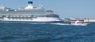 海遊館近くから45分で湾内(天保山大橋→コスモスタワー→イケア)をぐるっと回ります。