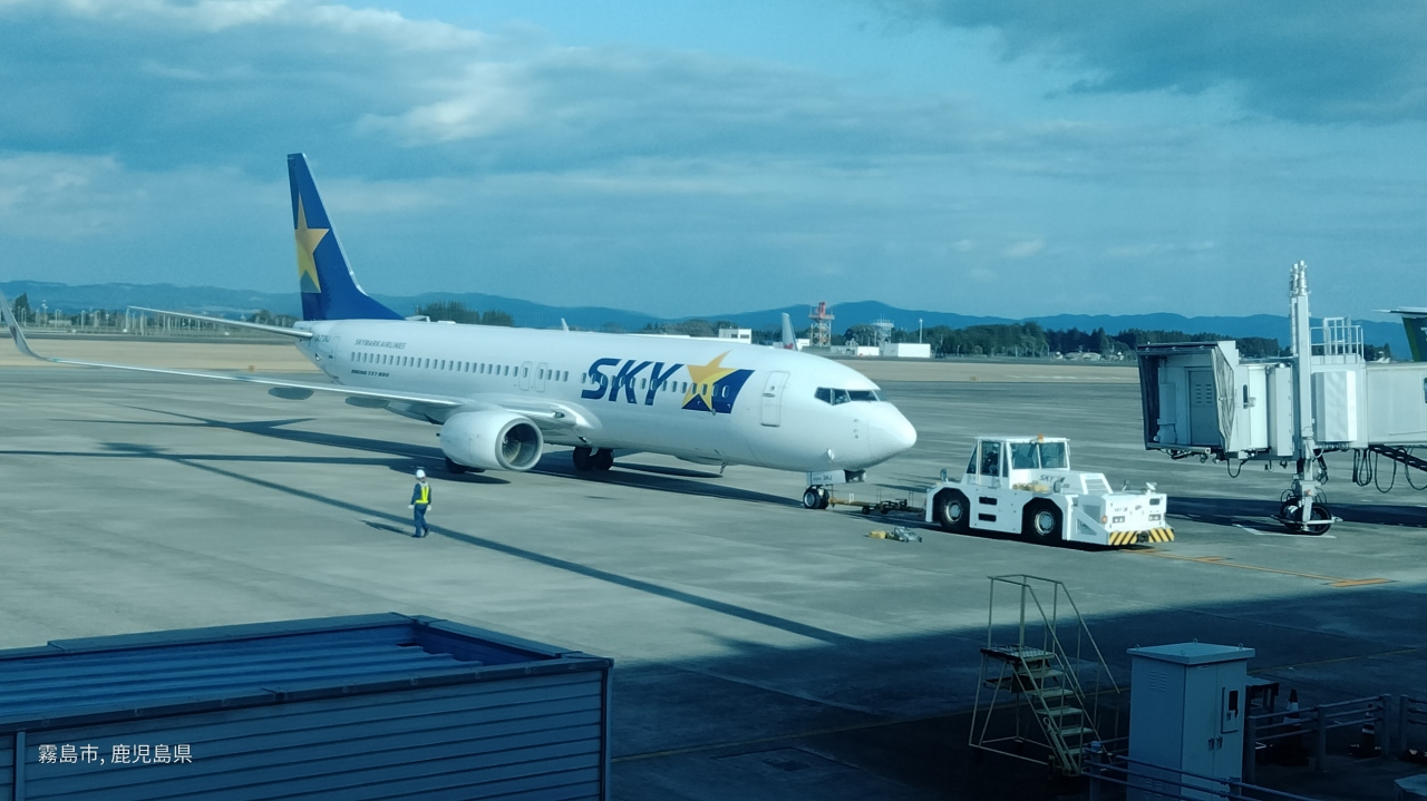 市街地から結構離れた場所にあるローカル空港で、鹿児島駅まではリムジンバスで1時間程度かかります。