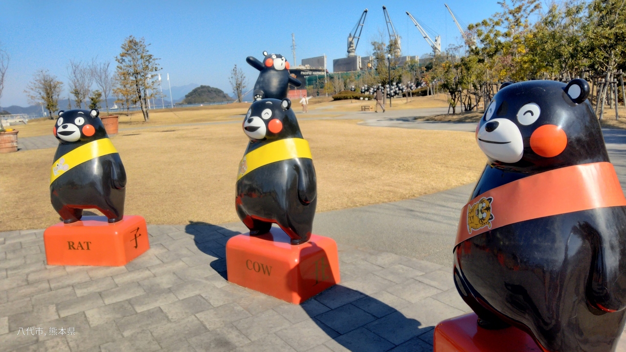 「くまモンポート八代」には「くまモン大合唱オブジェ」だけでなく、「十二支くまモン」や「巨大くまモン」もいます。
