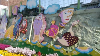 ディズニーキャラクターや童話の主人公が描かれた町です