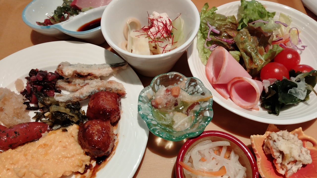 朝食は1階の居酒屋(ひだまり庭)で、和食ビュッフェをいただきました。- 旅行時期
