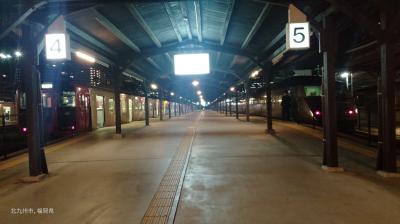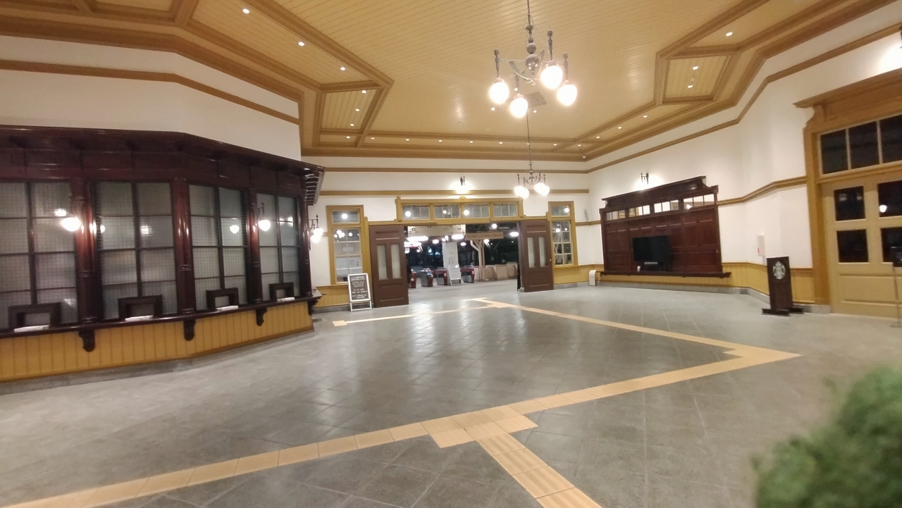 冬の夜明け前の閑散とした門司港駅の待合室で、1時間程度過ごしました。