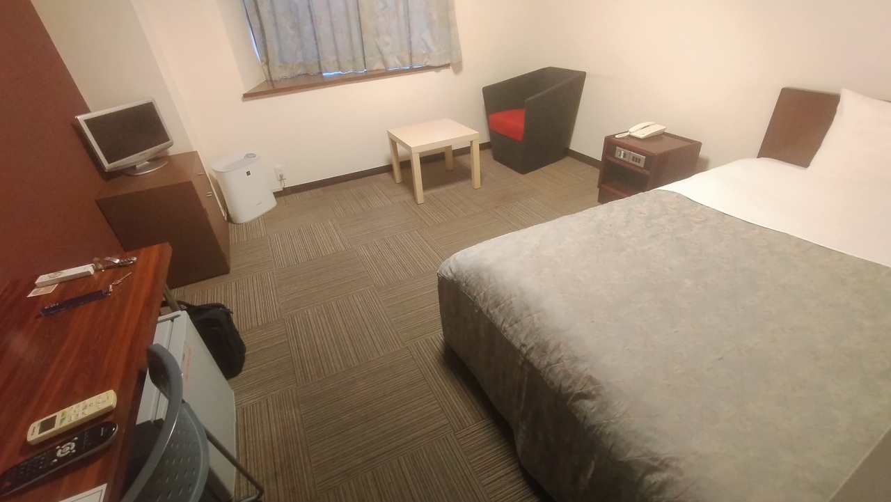 室内は広めのツインで、冷蔵庫/コーヒー/水などは備え付です。