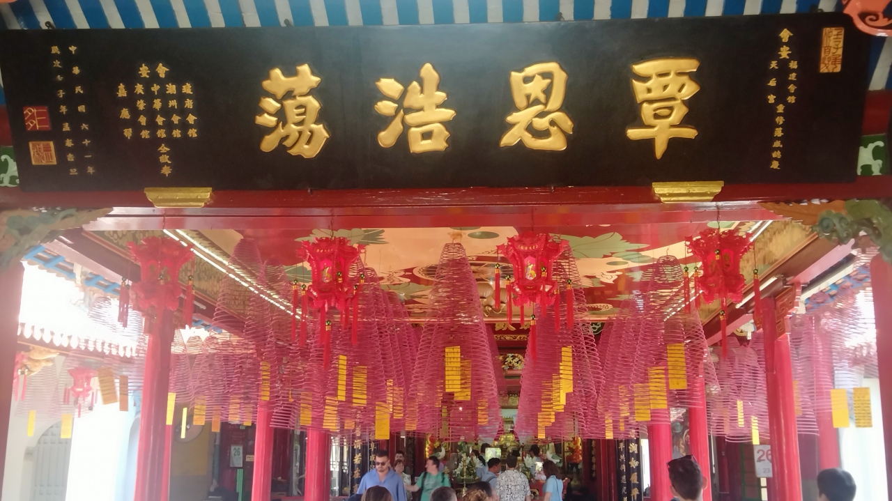 天井からぶら下がる大きな円錐形の渦巻線香は、他の寺院では見たことがありませんでした。