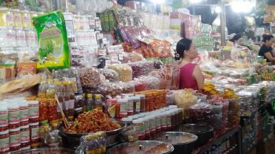 他の市場よりも発酵食材/調味料が多く置かれ、独特のにおいがローカル感を強めています。